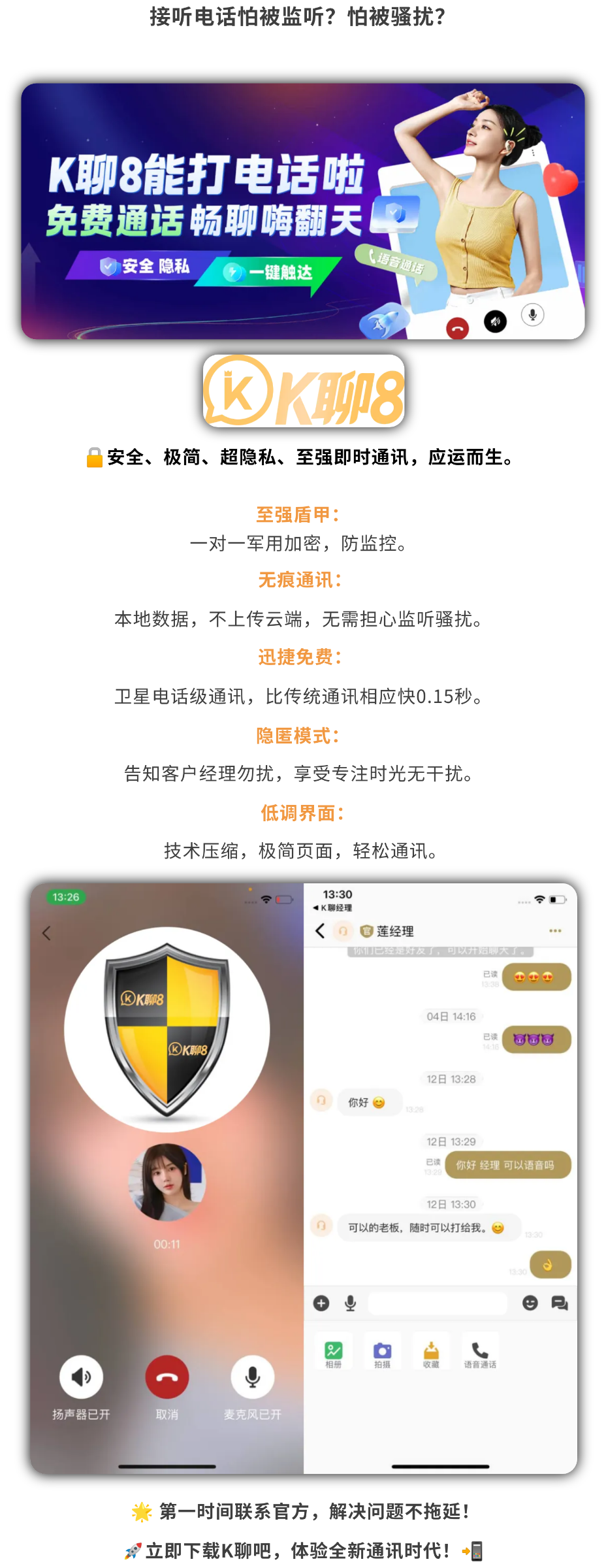 K聊8能打电话啦 免费通话 畅聊嗨翻天